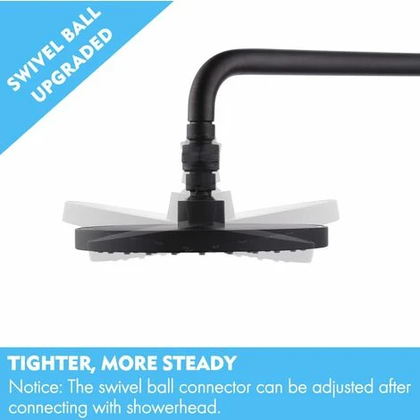 - Junta de rótula giratoria: Esta bola giratoria le permite ajustar cualquier ángulo del cabezal de la ducha después de la instalación. El ángulo de la ducha se puede ajustar fácilmente para adaptarse a niños y adultos, proporcionando una experiencia de ducha perfecta para todos los miembros de la familia. La conexión es lo suficientemente apretada como para que no se caiga después de girar en cualquier ángulo. Gírelo y permanecerá exactamente donde lo necesita.