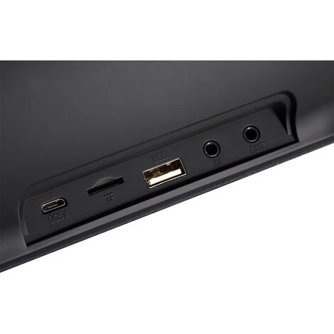 Reproduce música a través de Bluetooth, USB y tarjeta SD. También dispone de una salida de audio para auriculares. Posee micrófono y función manos libres para responder a llamadas telefónicas desde él. Incorpora Radio FM para resintoniza emisoras.