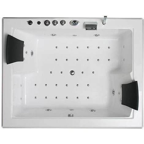 – Otras características: Grifería totalmente termostática (desagüe), control de la función de bombeo dependiendo de los niveles de agua, calentador de agua, sistema de auto regeneración, sistema de auto lavado, rebosadero, cabeza de ducha ajustable, grifo mezclador en cascada, 2 reposacabezas.