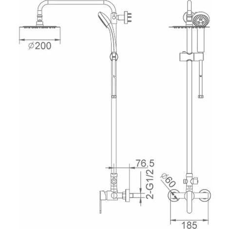 Barra de ducha extensible de acero inox. negro mate, extensible 98/130cm.