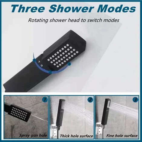 - TRES MODELOS DE DUCHA: Lluvia, masaje, jet. Puede cambiar los modos de ducha según su gusto. Simplemente gire el cabezal de la ducha para cambiar entre los diferentes modos.