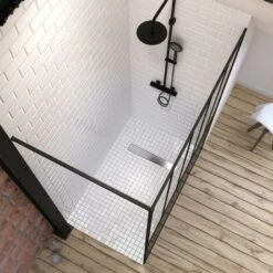 Pack Mampara De Ducha 140×200 Cm Negro Mate + Plato De Ducha Alicatado 140×90 Cm