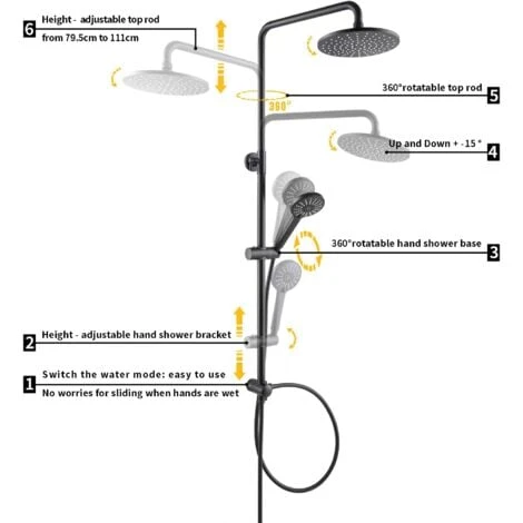 La temperatura del agua de este juego de ducha es: 3-70 ℃. Simplemente gire la perilla para configurar la temperatura de la ducha que más le convenga y brindarle la mejor experiencia de ducha.