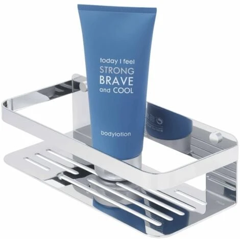 El canasto está hecho de materiales de alta calidad y es adecuado para usar en áreas húmedas. El estante plano con borde alto del canasto le aseguran que los productos permanecerán en su lugar. Es fácil de montar y de limpiar.