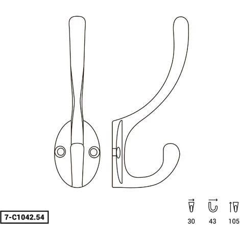 Colgador de Pared | Estilo Funcional | Fabricado en Zamak | Acabado en Cuero Viejo | Gran Capacidad de Carga | Medidas 18*54*85 mm | Sistema de Fijación Atornillado | 1 Unidad