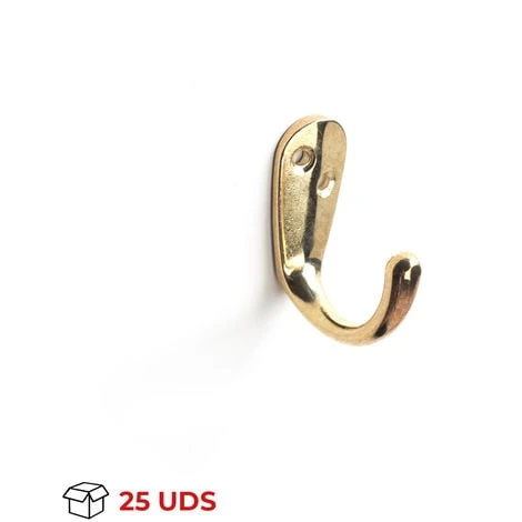 Colgador de Pared | Estilo Funcional | Fabricado en Zamak | Acabado en Latonado – Bicromatado | Gran Capacidad de Carga | Medidas 18*39*44 mm | Sistema de Fijación Atornillado | 25 Unidades