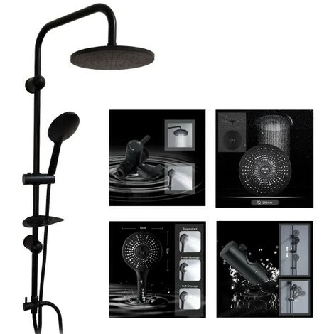 Columna De Ducha Altura Y Bajada Altura Ajustable Set Completo Ducha Negra