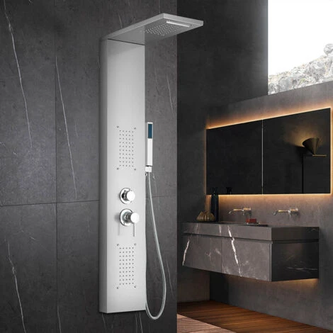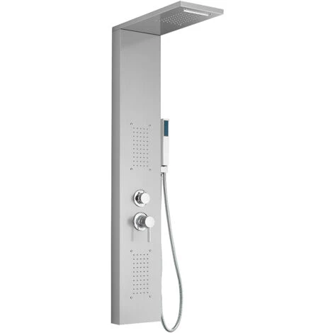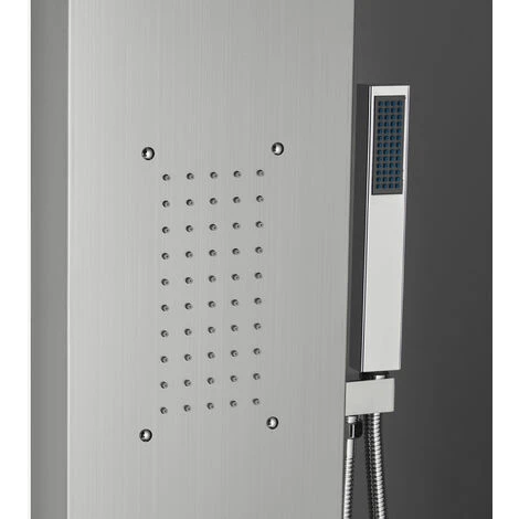 El panel de ducha Sirmione garantiza una experiencia única e inolvidable en su baño, muy similar a la de un verdadero SPA: el sistema de ducha consta de un panel de ducha equipado con un rociador de lluvia y una boquilla de efecto El deslizamiento suave y silencioso sobre la piel será una excelente terapia para relajar cuerpo y mente. El rociador se combina con la funcionalidad de una teleducha monotera con manguera flexible de 150 centímetros y 2 chorros de hidromasaje a lo largo de la columna que tonifican la espalda cada vez que se ducha.