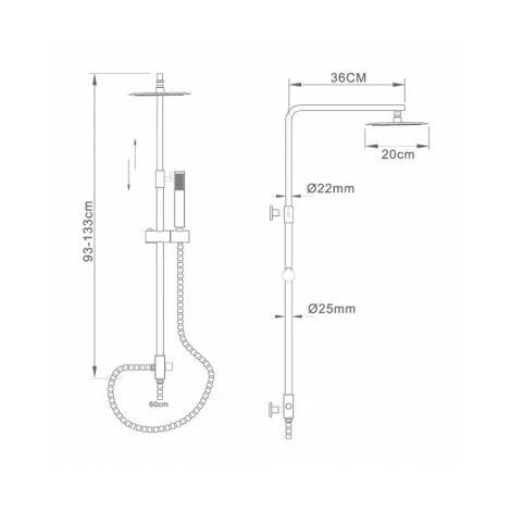 - Barra de ducha de acero s304 extensible de 93cm a 133cm