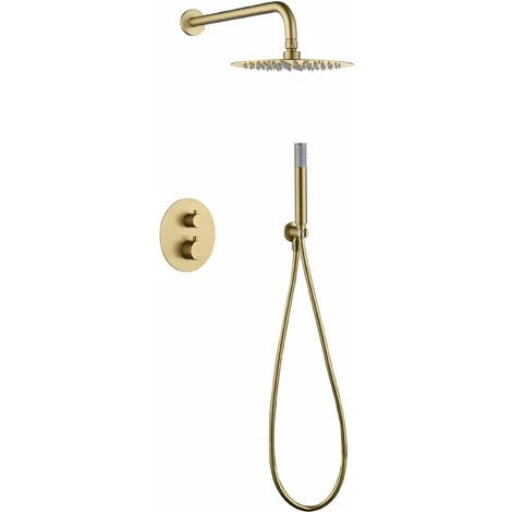 - Grifería termostática de latón oro cepillado (PVD) de 2 vías.