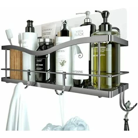 Ganchos incluidos: el organizador de baño viene con 4 ganchos que se pueden colocar y mover como desee, para que siempre tenga espacio para colgar su afeitadora, esponja o toalla