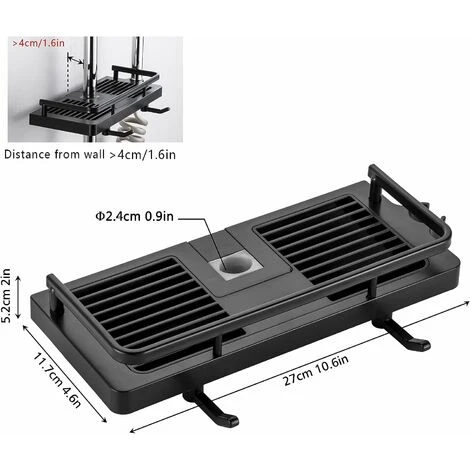 ALTURA AJUSTABLE – El estante se puede mover a cualquier altura. cualquier altura deseada. Adopta el estante de descarga del obturador, su diseño abierto provoca un drenaje rápido. El estante de la ducha tiene una valla curva en la parte inferior. 90 grados, evita eficazmente que los objetos se caigan y rayen.
