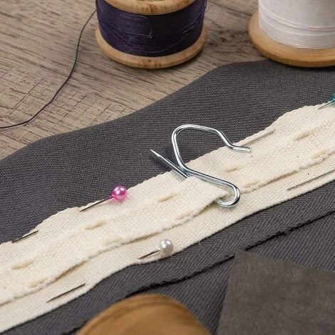 FUERTE Y RESISTENTE: Una excelente alternativa al tradicional gancho de plástico. Nuestros ganchos de pasador de metal se pueden usar con cinta para cabeza de cortina y se adaptan a diferentes grosores para lograr la opción de pliegue de su