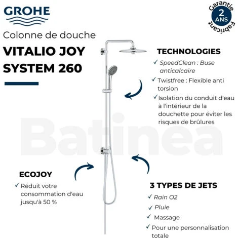 Composición de la columna de ducha con desviador manual Grohe Vitalio Joy System 260: