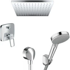 Características del Set de ducha empotrado con mezclador monomando, ducha fija cuadrada, teleducha de 2 chorros y caño, Cromo, Hansgrohe Logis Loop (71264000-Vernis2):
