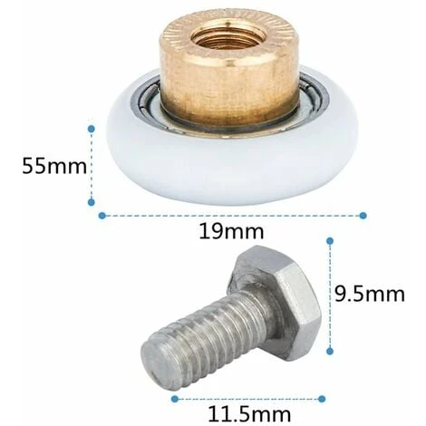 •Un juego de 8 rodillos para puertas de ducha de 19 mm de diámetro con tornillos.