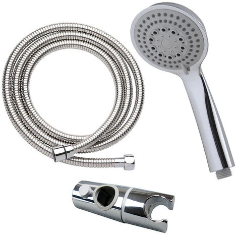 Maneral y soportes fabricados en ABS de alta resistencia, la barra de ducha en acero inoxidable. La ducha de mano está acabada en cromo brillo, aporta un toque elegante a su baño. Dispone de un sistema antical que le facilitará el mantener, en perfecto estado, este producto. La salida de este maneral le dará una relajante ducha. Esta ducha de mano redonda tiene 3 modos de chorro de agua, Lluvia natural, hidromasaje y chorro.