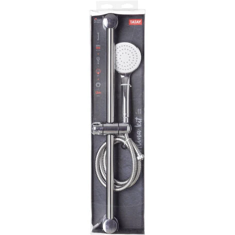 Kit de Alcachofa Ducha Marina con Barra y Manguera. Manguera de 1,5 metros y 10 cm de diámetro. El soporte de la ducha es de ABS Cromado y la barra de Acero Inoxidable. La piña de la ducha es de plástico ABS de gran calidad que incorporan diferentes tecnologías que facilita la limpieza evitando la acumulación de la cal y a la vez, impulsa al ahorro del agua logrando altas clases de eficiencia energética. Todas las duchas de TATAY contienen una garantía, asegurando una gran calidad y están diseñados en España.