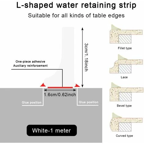 -Muy adecuado para duchas sin curvas y otras zonas que deben contener agua: debajo de la cortina de la ducha, lado del plato de ducha, umbrales de baño, lavabos; tendido, máquinas para; lavado, fregaderos.