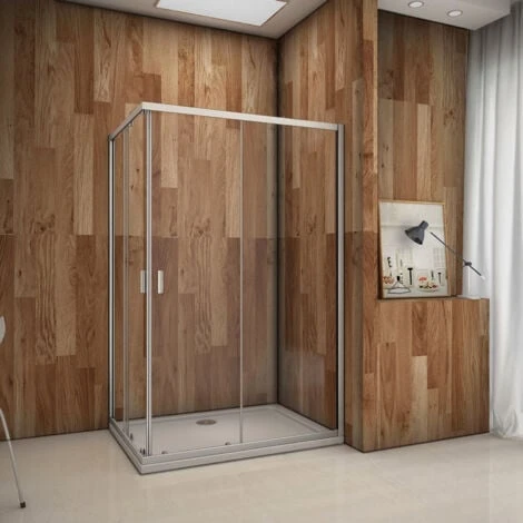 - Mampara de ducha esquinera con 2 cristales correderas y 2 cristales fijos