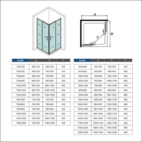 - Tamaño: 700x700x1850mm, ancho ajustable (680-700mm | 680-700mm)