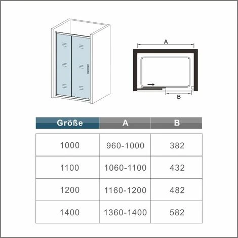 - Vidrio: Alta seguridad endurecido de 6 mm (ESG) ,1 fijo + 1 puerta corredera