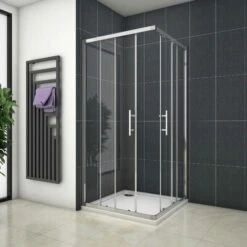 - Material: Vidrio templado transparente ESG (mampara) + aluminio (perfil)