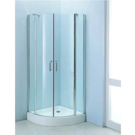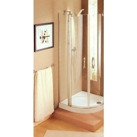 Mampara ducha lombok, cuarto de circulo 80×80 x 185 , cristal templado de seguridad de 6 mm,con puertas abatibles de cierre imantado , asas cromadas y equipada con perfiles de compensacion , perfiles de aluminio acabado en cromo.