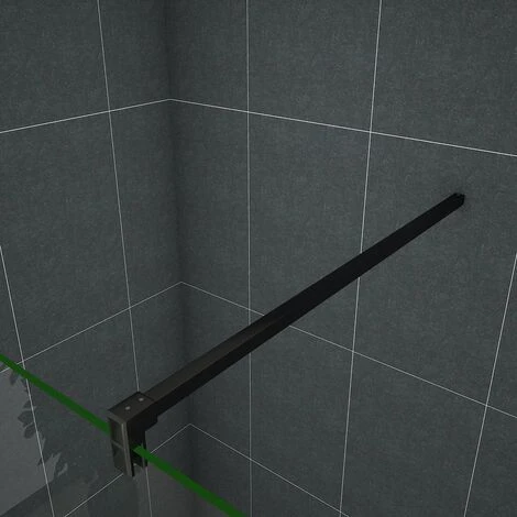 - Mampara de ducha estilo Walk in con perfil negro mate y barra de 140cm