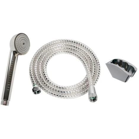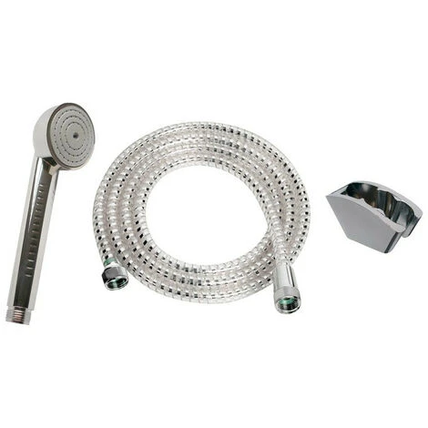 Conjunto teléfono ducha, flexo PVC 1,50 m. Codo cromado y tuerca cónica.
