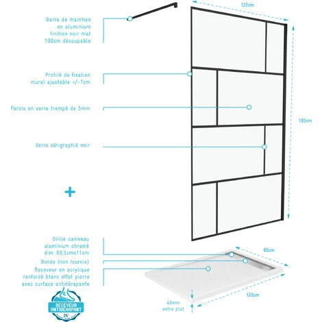 - Mampra de ducha en cristal transparente con serigrafia “Briques”