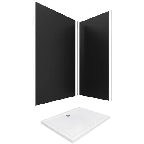 PACK PANELES PARED NEGRO EN ALUMINIO CON PERFIL EN ESQUINA Y ACABADO CROMADO + PLATO DUCHA – 90X120CM – WALL `IT GRIS 90X120 + WHITENEES II 120
