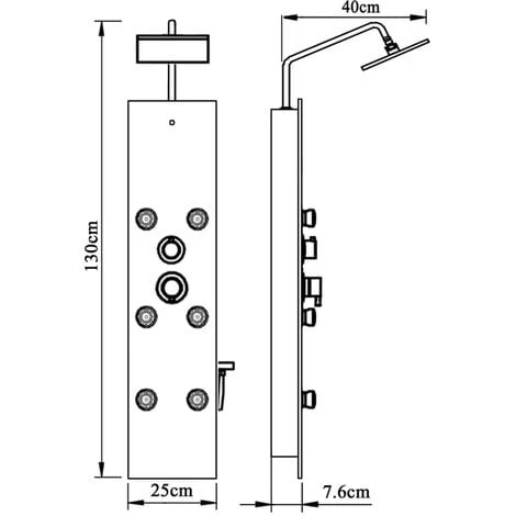 - Funciones: Ducha de estilo de lluvia, 6 jets de masaje corporal, 1 alcachofa para ducha manual