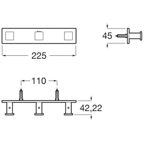 La colección de baño HOTELS de ROCA presenta una serie de accesorios de baño, piezas con diseños minimalistas y elegantes, capaz de adaptarse a cualquier espacio, tanto público como privado. Soluciones versátiles que aportan a tu baño elegancia y modernidad sin renunciar a la funcionalidad. La percha triple de esta colección es de acabado cromado.