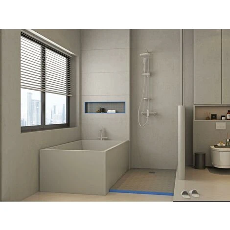 Su composición de espuma de poliestireno cubierta de una capa de fibra de vidrio ha que este plato de ducha sea ligero e impermeable y pueda recortarse con facilidad.