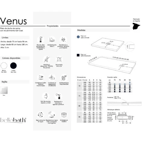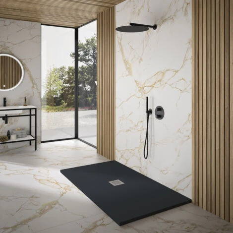 FABRICADO EN RESINA: Plato de ducha con un diseño extraplano de estilo único de efecto pizarra. Fabricado en resina de poliéster con una concentración máxima de partículas minerales dolomitas y carbonatos, coloreado en masa y recubierto con una doble capa de gel-coat.