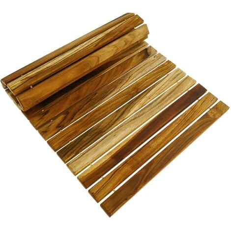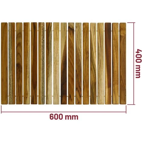 - DISEÑO: Base de madera ideal para suelo de baño y crear un espacio elegante y cálido, esta madera teca permite ser resistente al agua y a la humedad como tener una tarima antideslizante, está equipada con adherencias en los pies para que la tarima no se mueva