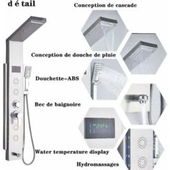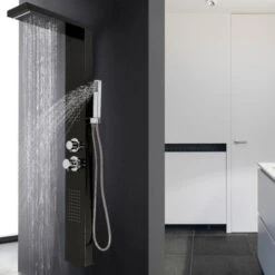 Panel De Ducha De Acero Inoxidable,Cabeza De Ducha, Ducha De Mano Y Chorros De Masaje,negro