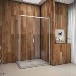 Mampara De Ducha Rectangular Puerta Corredera Con Panel Lateral Cristal Templado 5 MM 100x70x185cm
