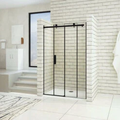 Mamparas De Ducha Corredera AICA 100x200cm PERFIL NEGRO MATE Vidrio Templado 8 MM Antical