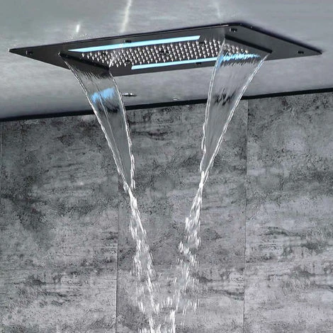 Ducha fija negro de gran diseño para una instalación empotrada de acero inoxidable de gran calidad.