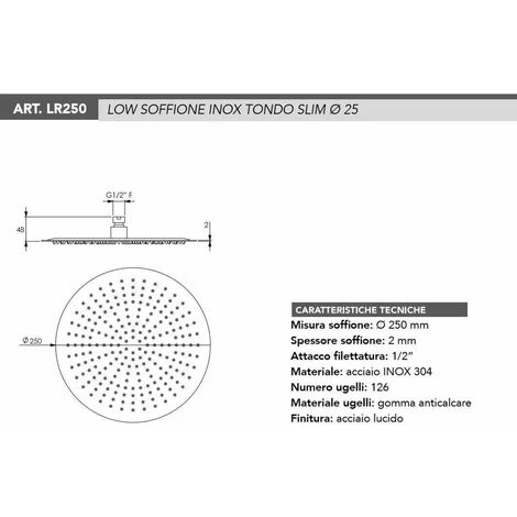 El cabezal de ducha está equipado con un sistema anti-piedra caliza, se produce en Italia de acuerdo con las normas ISO9001