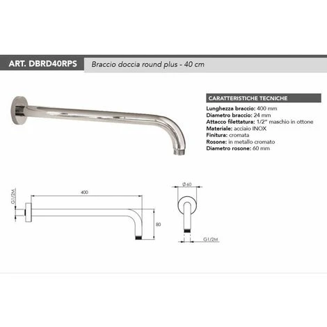 El juego de rociador y brazo de ducha de línea redonda dotan a todas las mamparas de ducha con sencillez y funcionalidad, este conjunto está compuesto por un rociador de acero inoxidable de Ø25 cm y un brazo de ducha de latón con una longitud de 40 cm