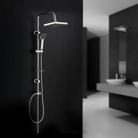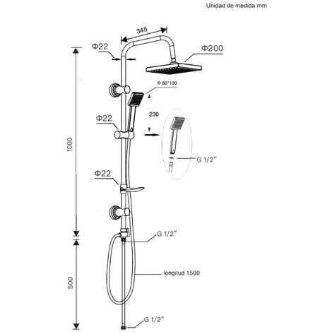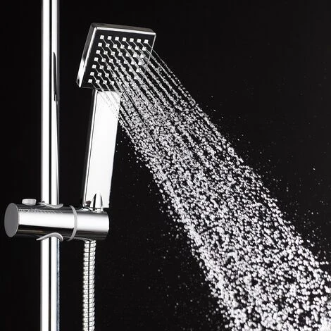 Mango de ducha y rociador negros con acabado en cromo de alta calidad.