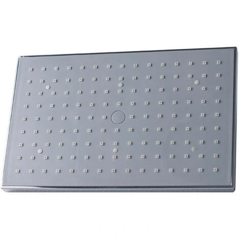 Rociador de ducha rectangular 24,5x14x5cm, construido en ABS cromado, instalaci¢n sencilla con una rosca de 1,2, posee tetinas antical de silicona de f cil limpieza y r¢tula orientable.